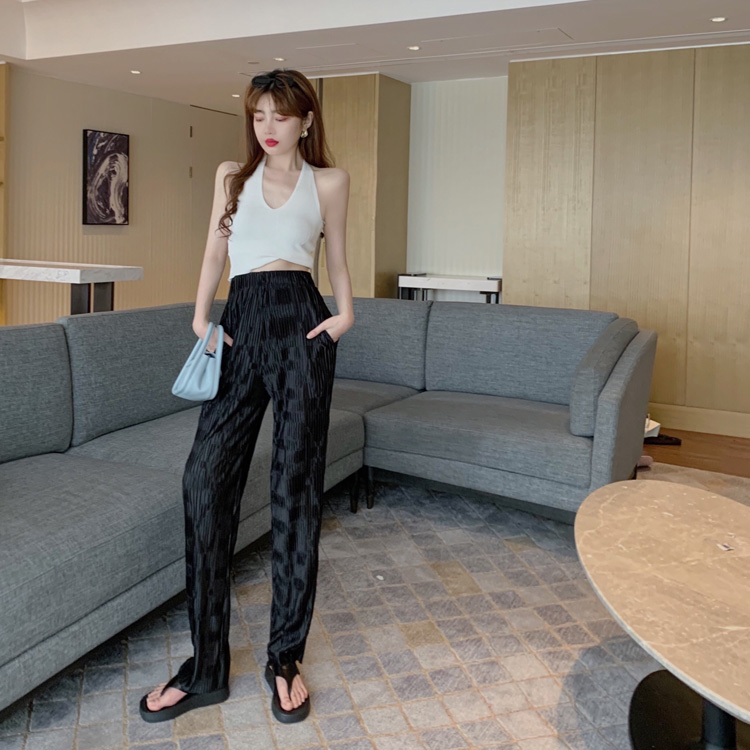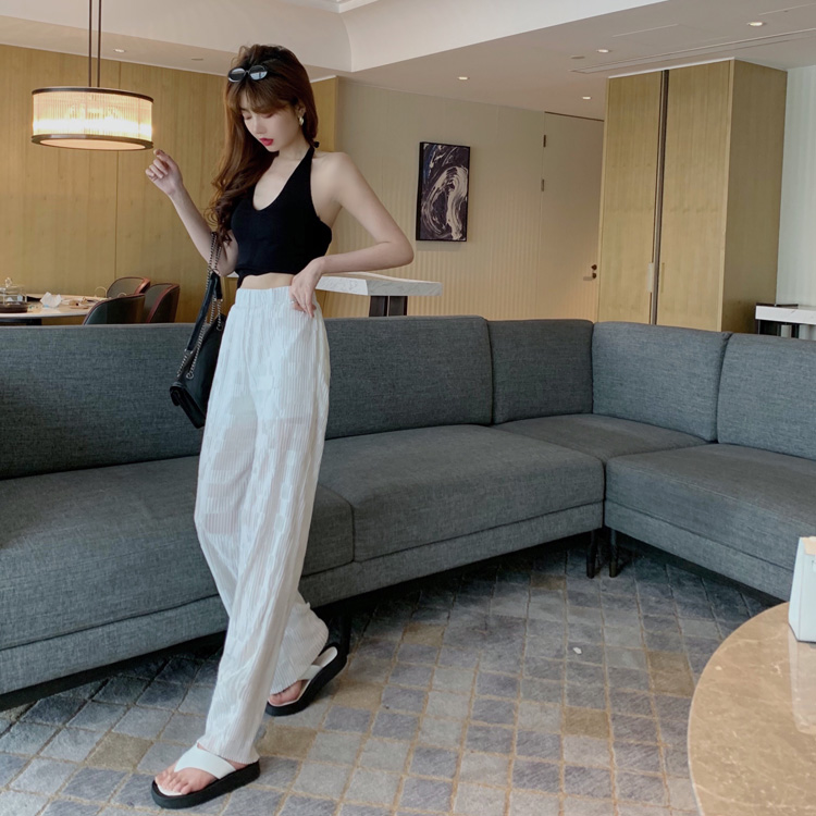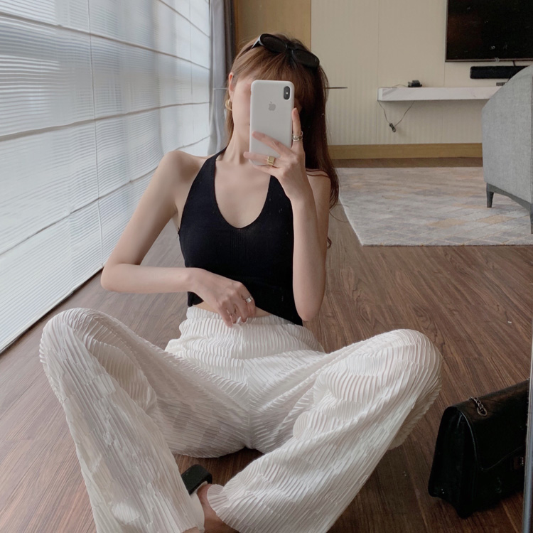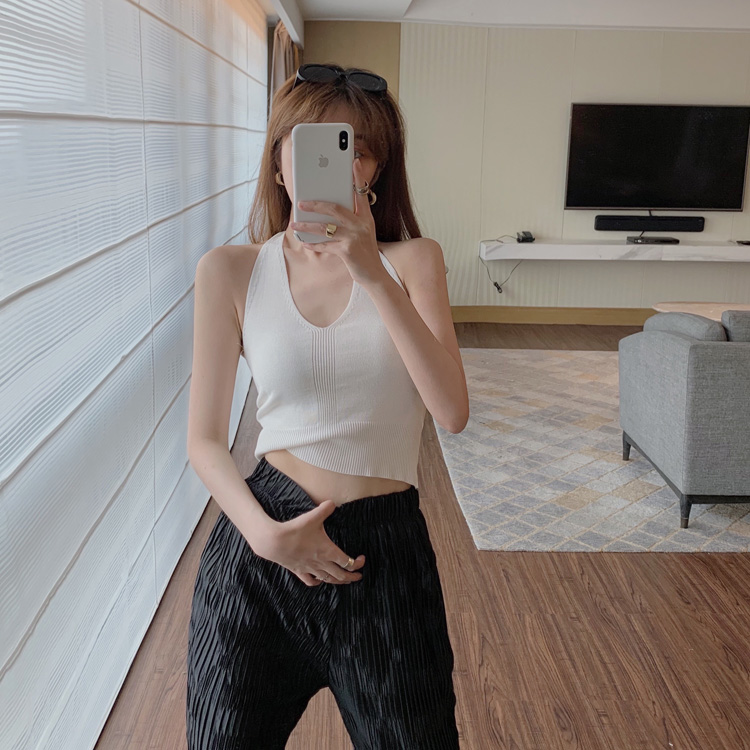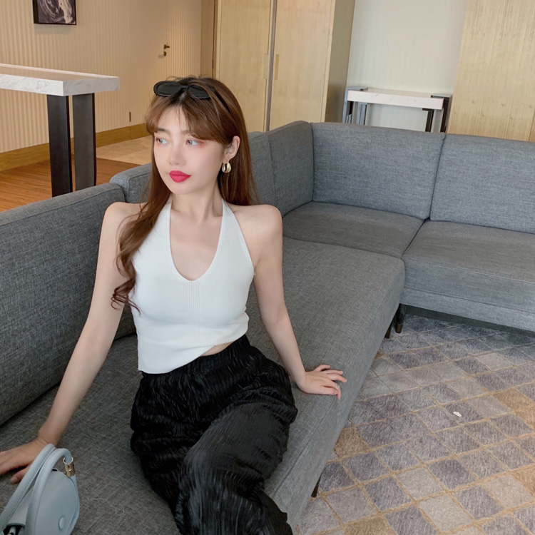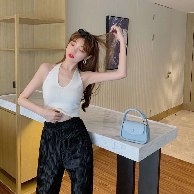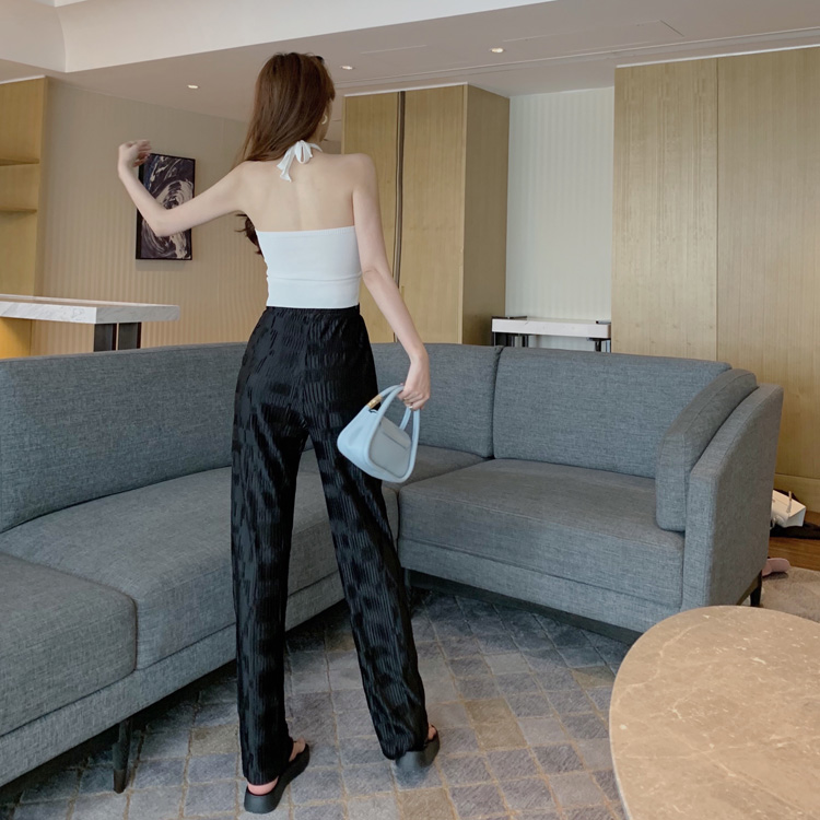 港味時尚休閑女裝2021夏季新款V領掛脖露背小背心垂墜感高腰長褲