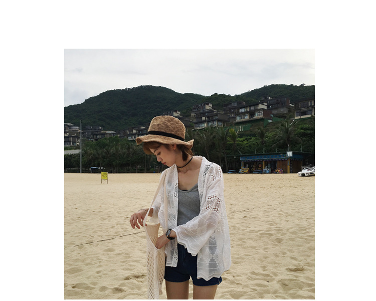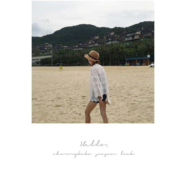 2017韓國(guó)官網(wǎng)蕾絲鏤空外套罩衫開衫七分袖防曬衣女夏天海邊沙灘服
