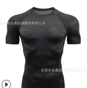 男運動健身肌肉短袖T桖高彈緊身速干透氣跑步訓練戶外健身瑜伽服