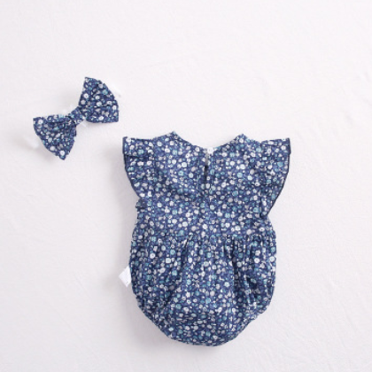 INS夏季新品女童寶寶碎花飛袖哈衣嬰兒純棉連體爬服含發(fā)帶