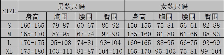 尺碼規格如下表: