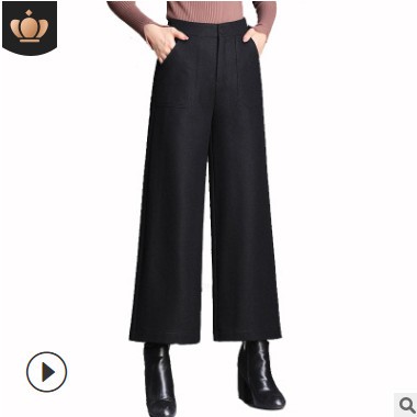廠家批發冬季新款羊毛呢九分闊腿褲女 高腰肥腿呢子褲 跨境羊毛褲