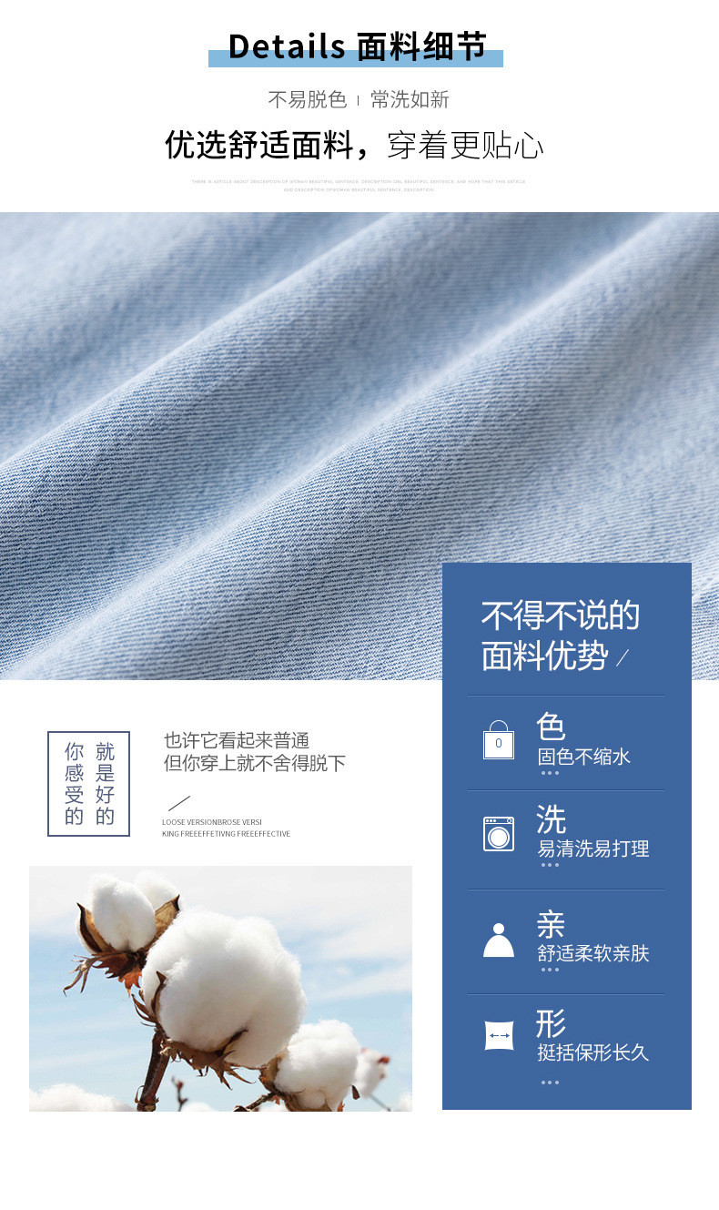 詳細(xì)信息 牛仔因?yàn)橄此尾煌L(zhǎng)褲和短褲可能會(huì)有稍微色差,不保證一模一樣的。下單默認(rèn)知曉!