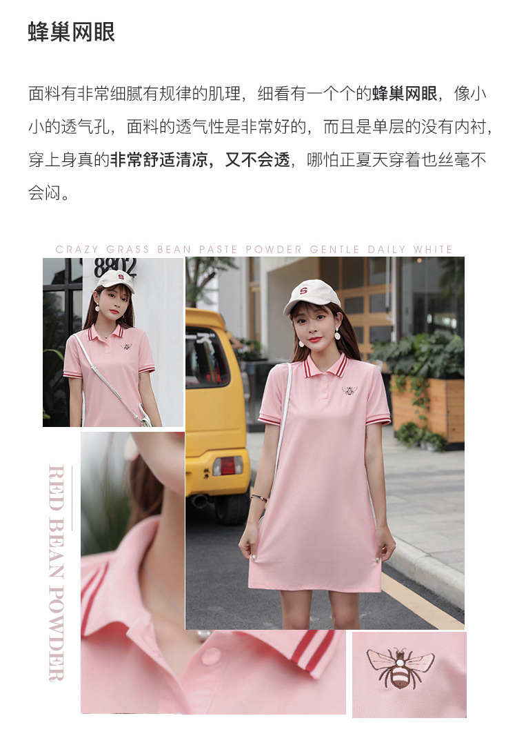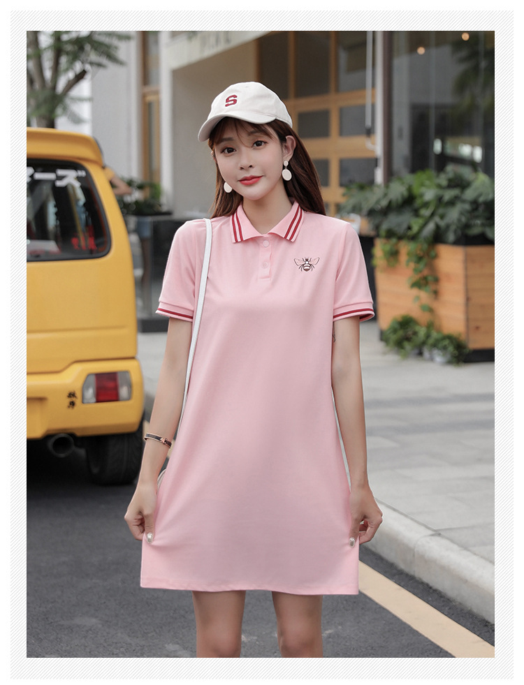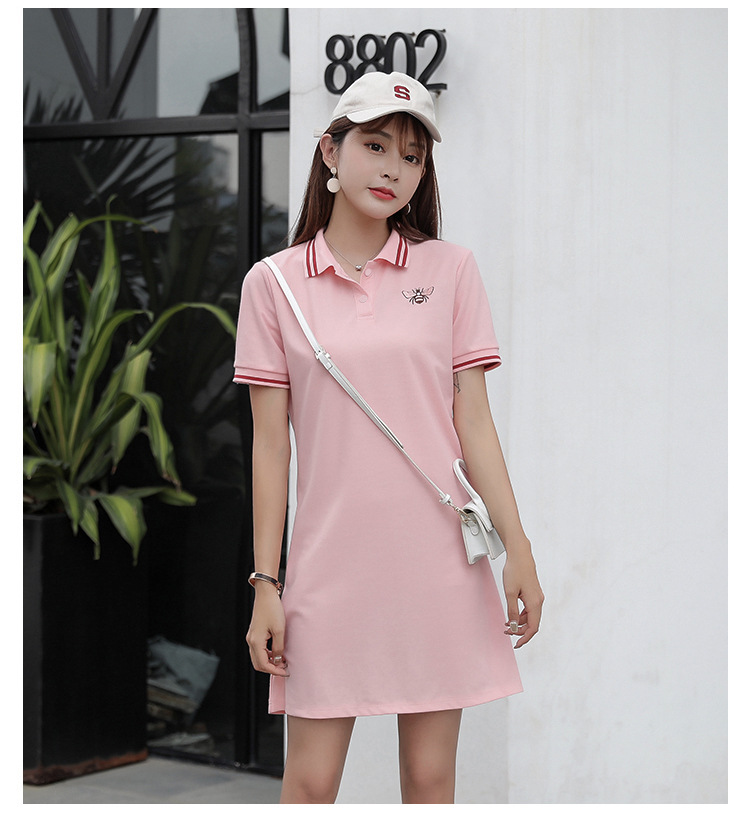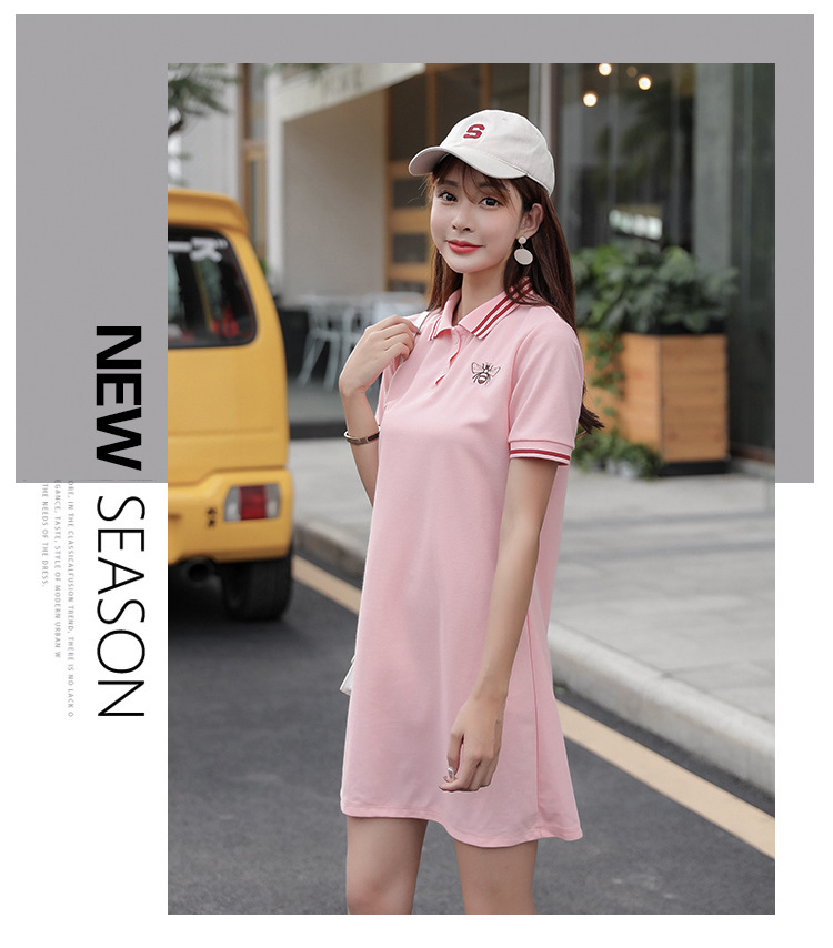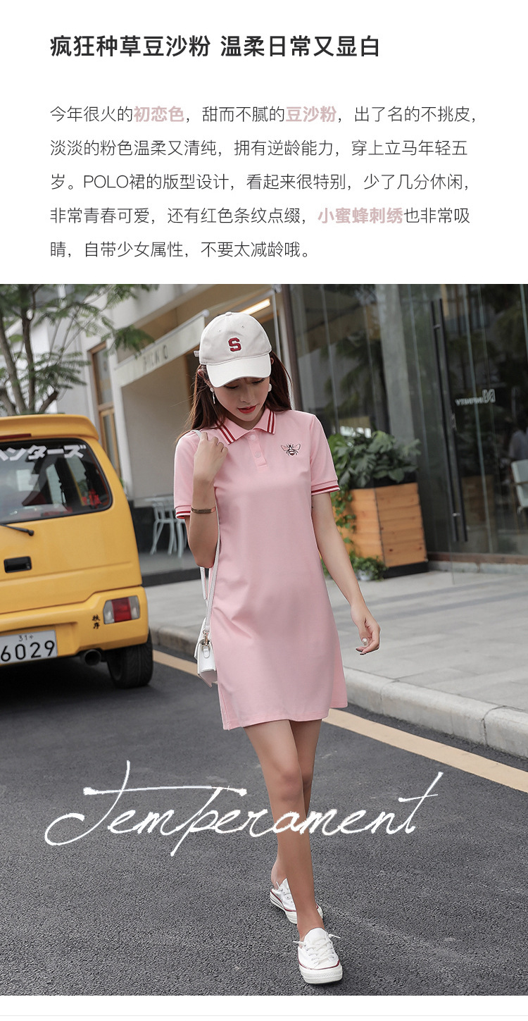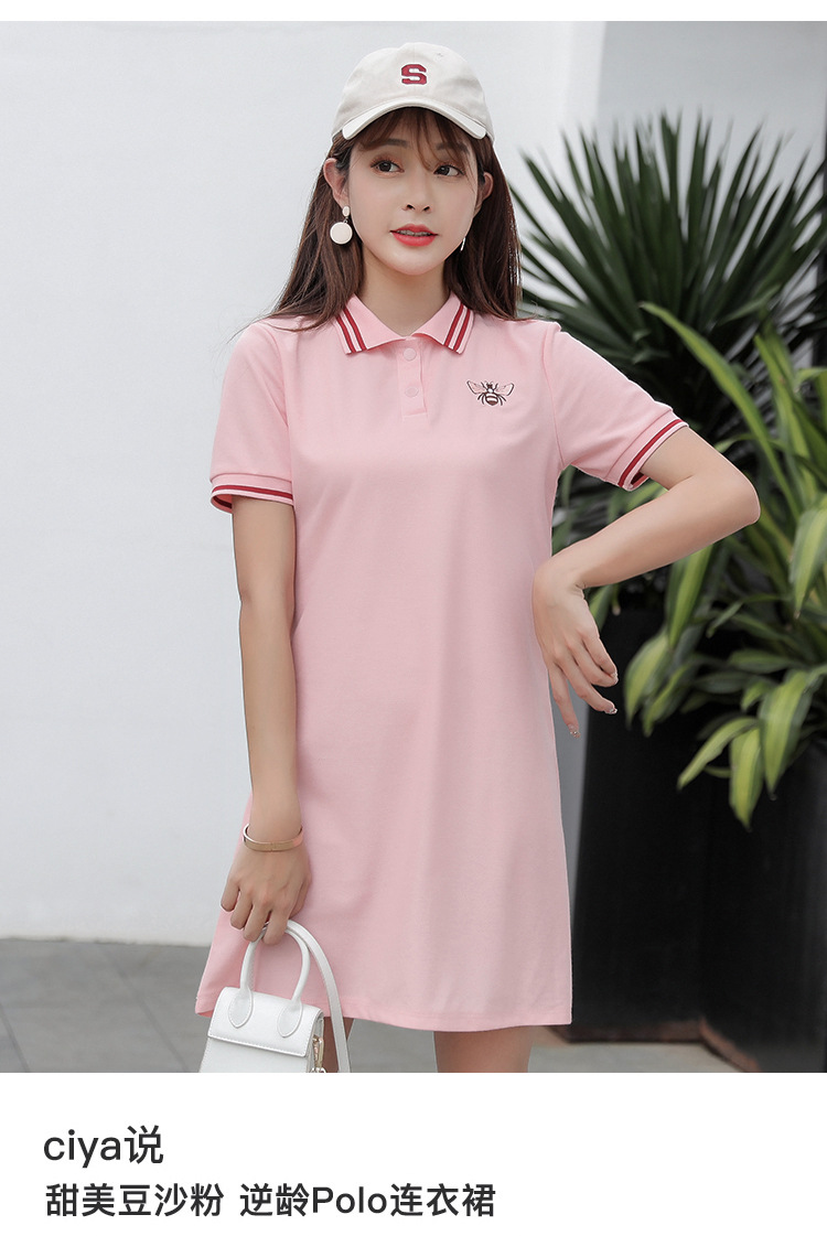 2019夏季新款短袖直筒Polo領歐美風連衣裙蜜蜂繡花裙子女