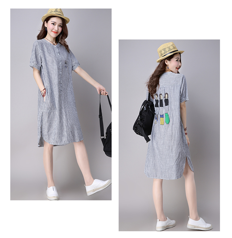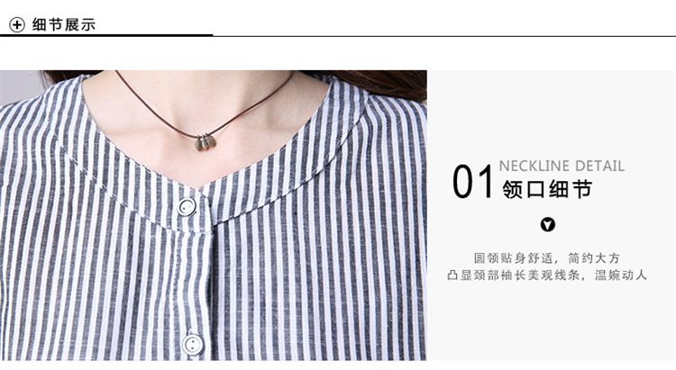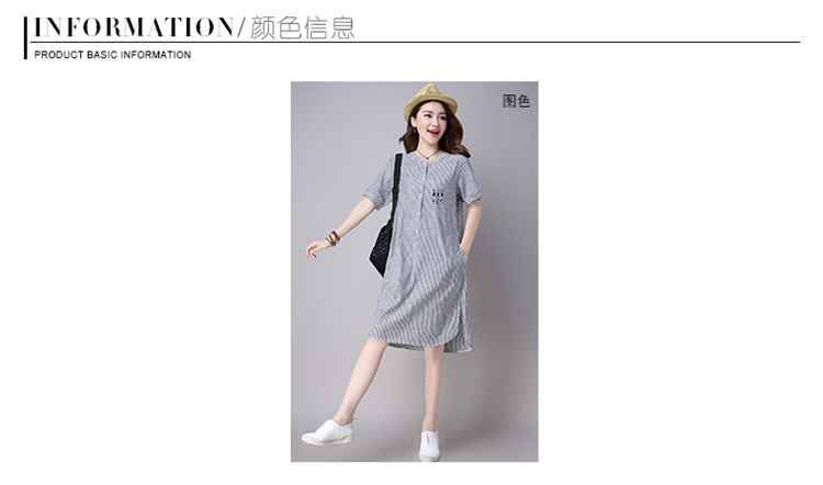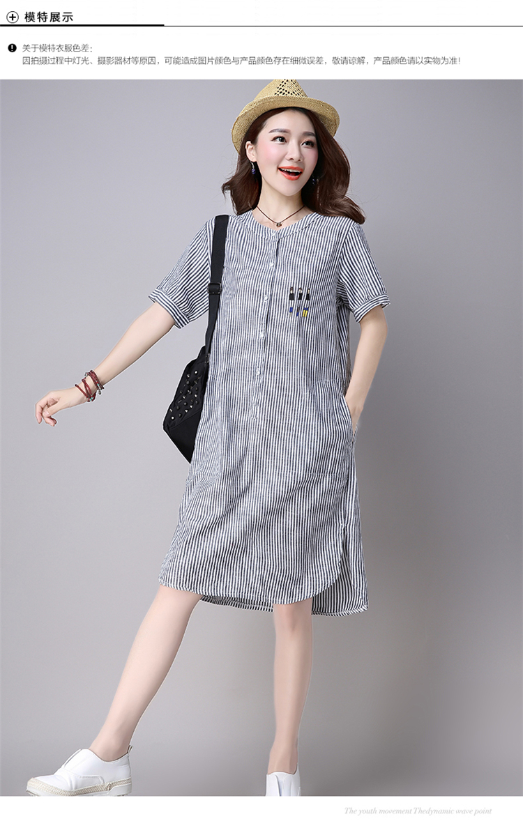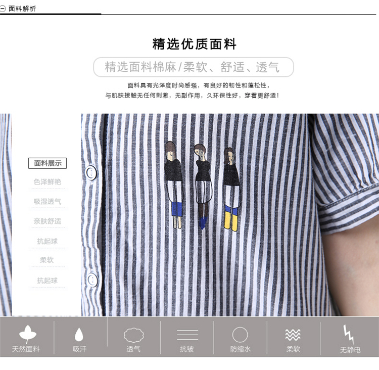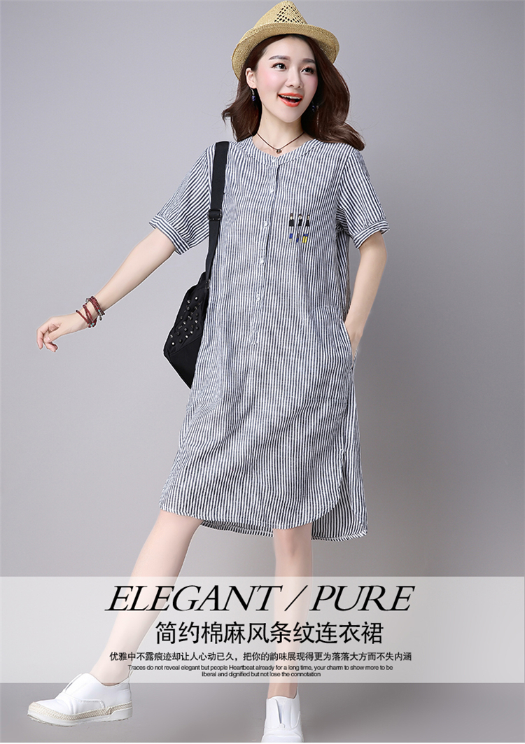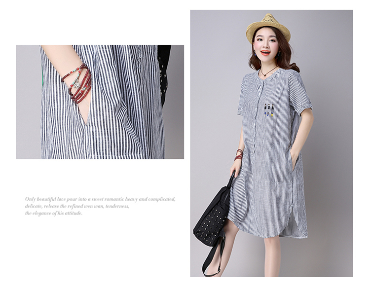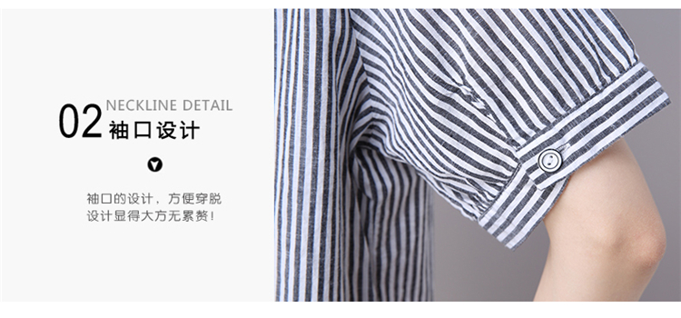 2019原創大碼 條紋襯衫女寬松棉質短袖薄上衣夏裝衣服女顯瘦