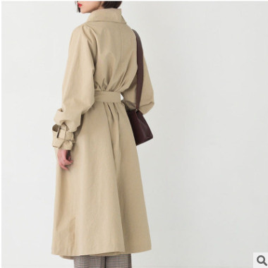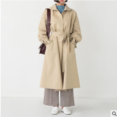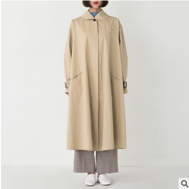 2018年秋冬新款圓領寬松中長款單排扣風衣外套韓版女裝加工定制
