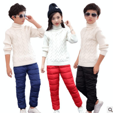 兒童高腰羽絨棉褲冬季寶寶棉褲男童保暖褲女童加厚外穿秋冬褲子