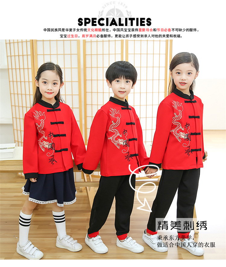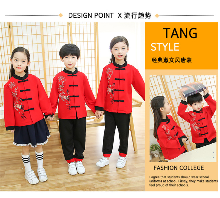 兒童年服套裝2021秋季新款小學生中國風校服紅色兩件套幼兒園園服