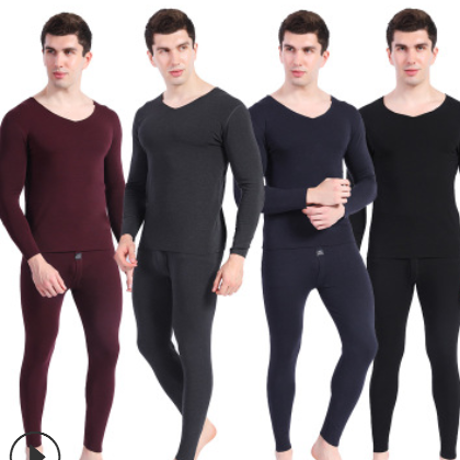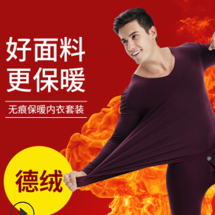 德絨保暖內(nèi)衣套裝男士無痕保暖內(nèi)衣加絨V領(lǐng)發(fā)熱纖維加絨秋衣秋褲