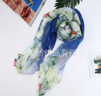 花卉圍巾旅游拍照圍巾防曬絲巾女圍巾長款休閑藝術絲巾廠家現貨批