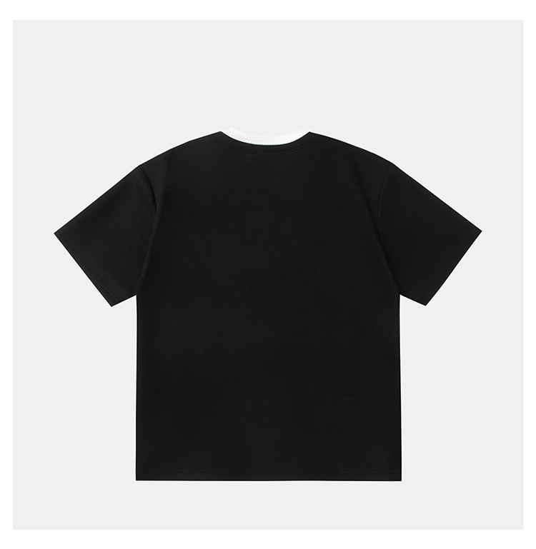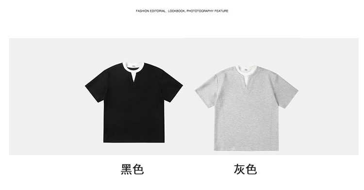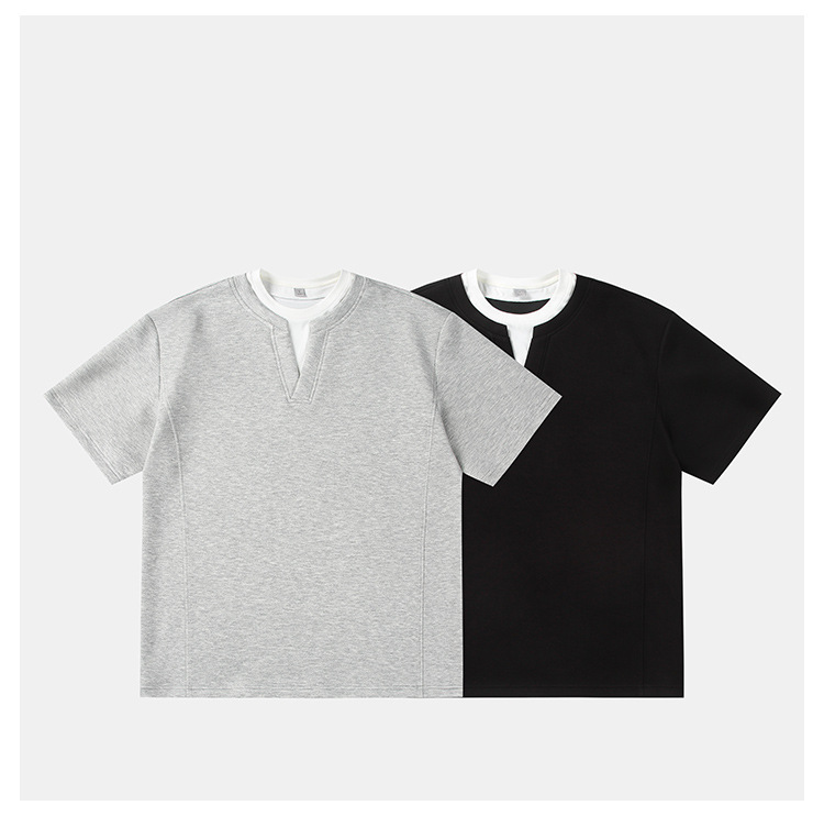 拼接假兩件T恤男夏季V領短袖T恤男潮牌男裝寬松內搭打底衫半袖衫