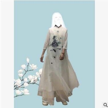 繡花蝴蝶連衣裙中式復(fù)古禪服長裙袍子