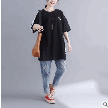 加肥加大碼女裝300斤夏裝新款寬松印花字母中長款短袖T恤女05213