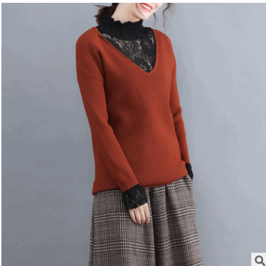 300斤大碼女裝冬季新款蕾絲拼接胖MM毛衣顯瘦200斤打底衫33112