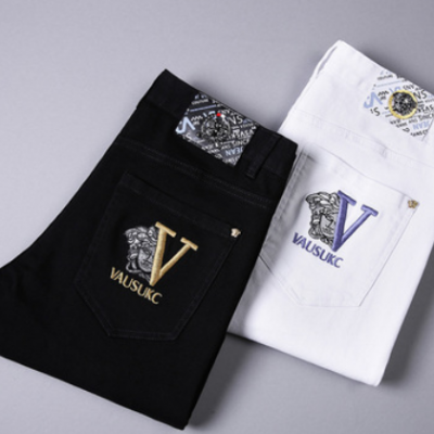 歐洲站國際潮牌美杜莎刺繡秋冬季牛仔褲男士彈力修身小腳褲子批發