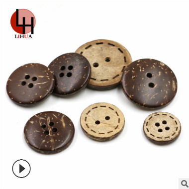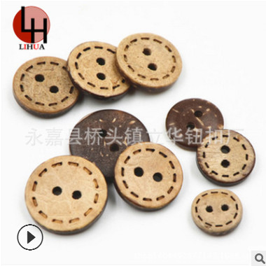 專業批發天然椰子鈕扣四眼兩眼虛線環??圩用聝和b裝飾紐扣