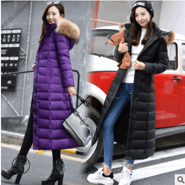 一件代發(fā)批發(fā)2018新款加長款超大貉子毛領(lǐng)過膝羽絨服女大碼羽絨服