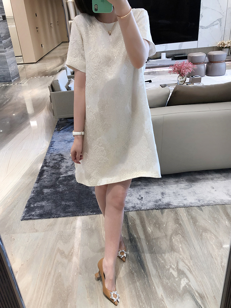 重要的事說三遍:現貨現貨現貨 是一款客供尾布立體真絲面料 去年開發過一款上衣得到大家認可 這種面料無法仿制,是尾布(磚柜剩的布) 濃郁的名媛風,非常非常高級 一眼即愛的奢華感,但上身很年輕 秒殺平庸凡物,裙的長度很萌 這個長度是蕞顯年輕的娃娃款風格
