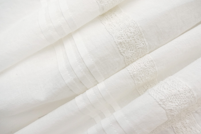 我們這款來(lái)自于法國(guó)很有名的Pin牌。 它家就是擅長(zhǎng)這個(gè)風(fēng)格。 定織細(xì)膩、軟糯的棉,支數(shù)高密度大。 薄軟,卻有韌性。 配合定染的米白色蕾絲。 形成一種飄飄欲仙,卻有質(zhì)感的氛圍。