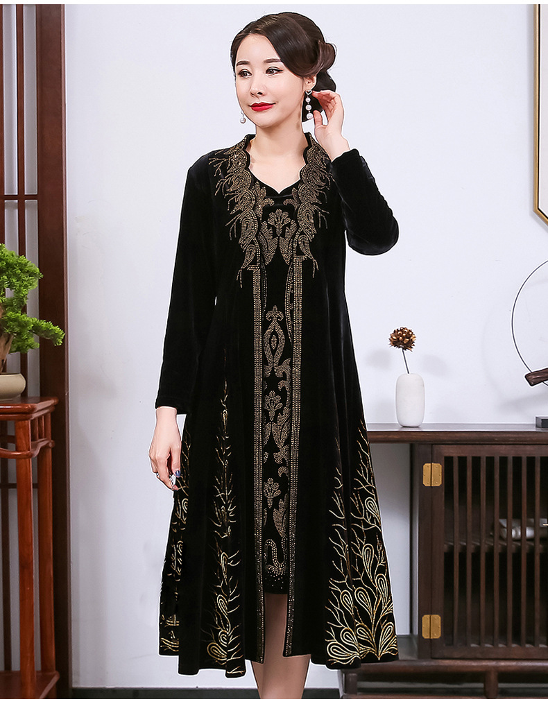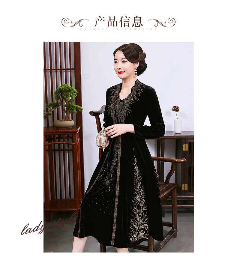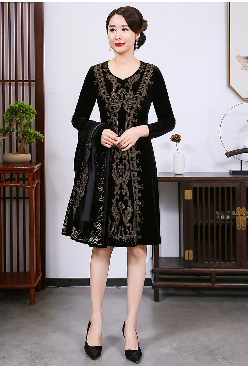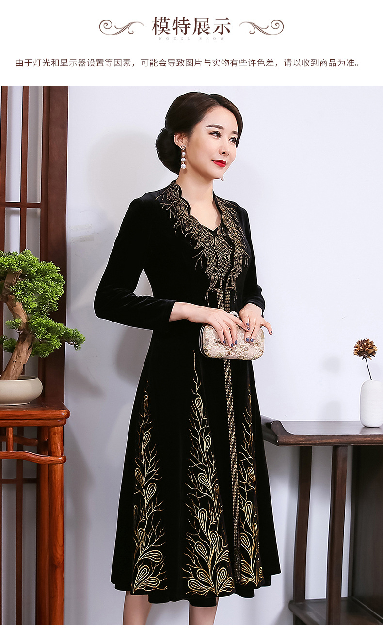 宸妙艷2020新品絲絨媽媽裝外套女 絲絨重工燙鉆時尚氣質長款套裝