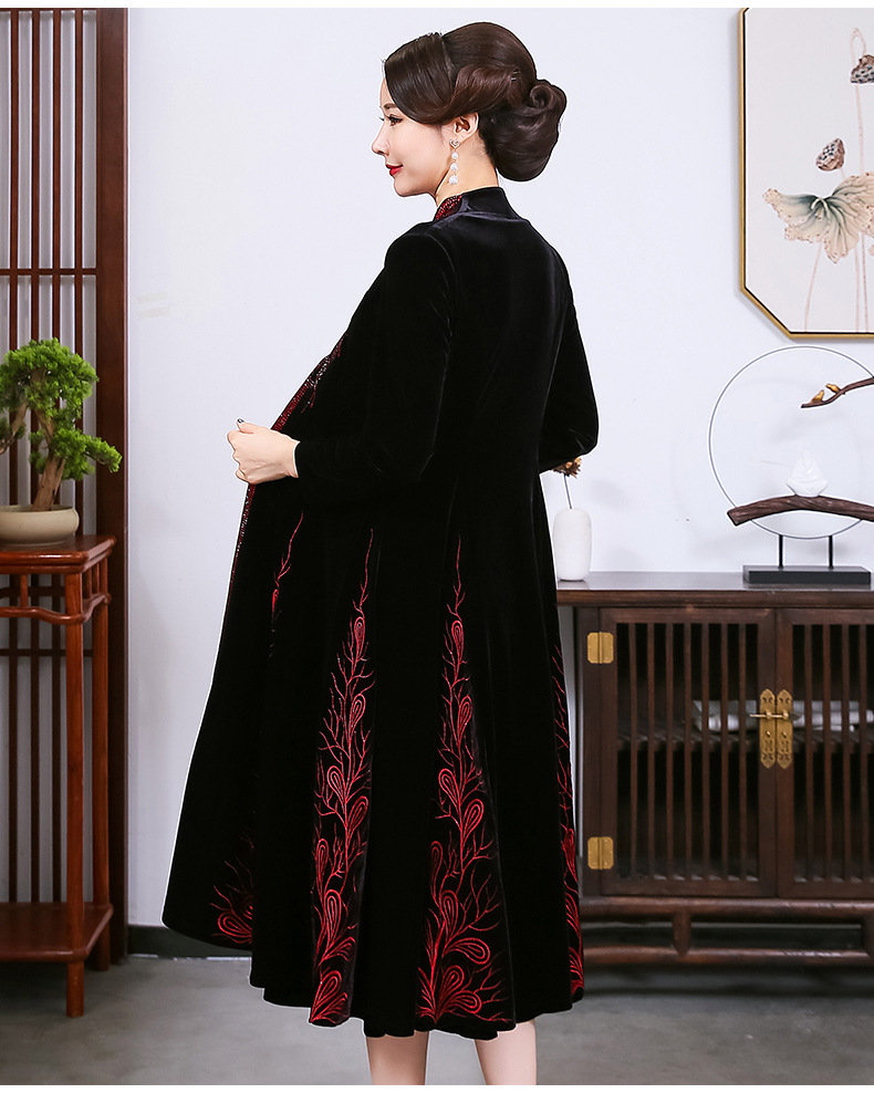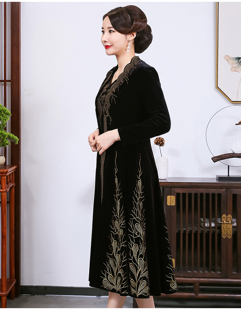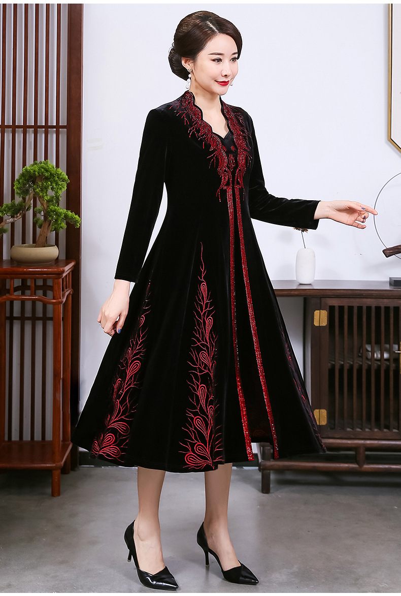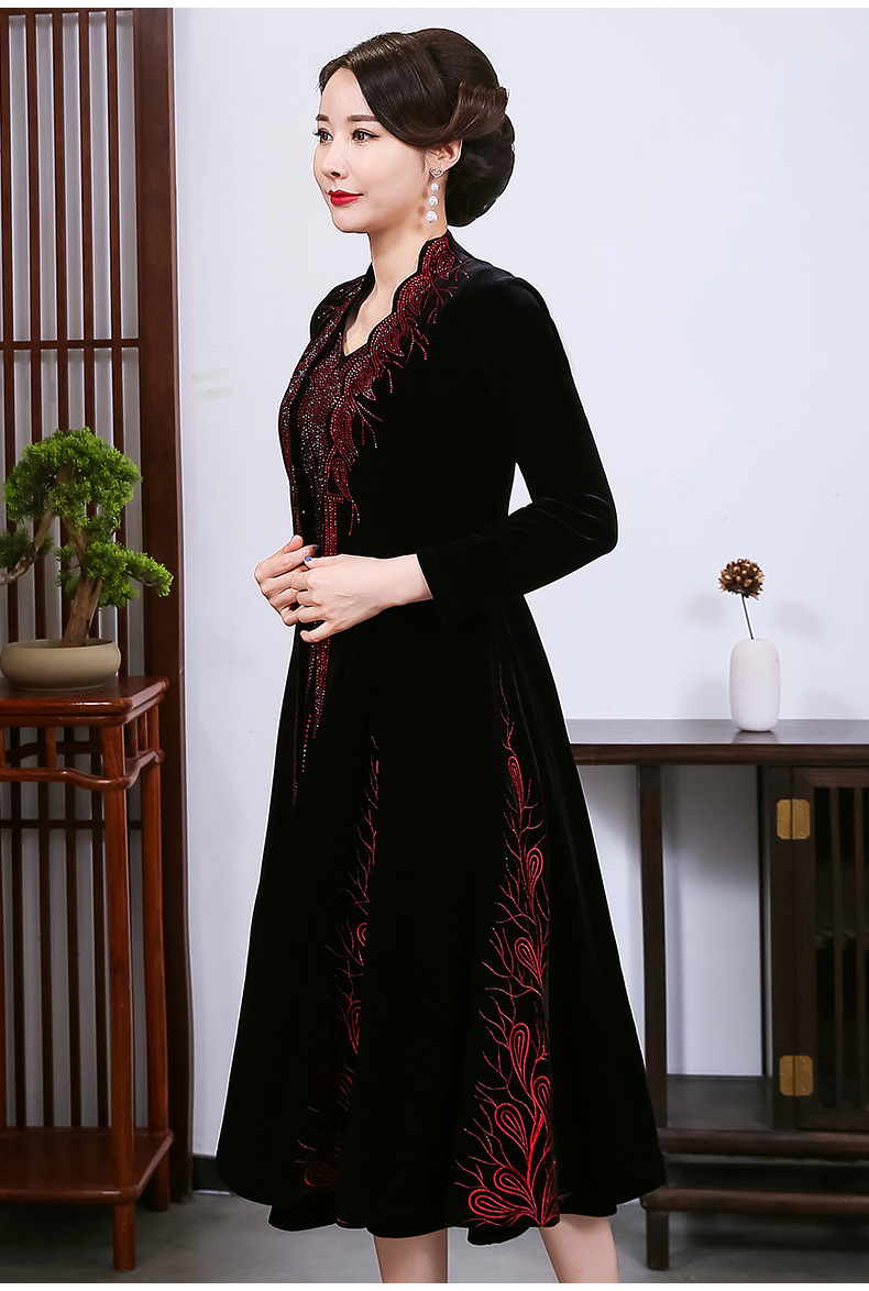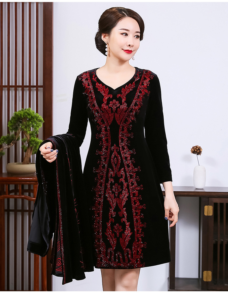 宸妙艷2020新品絲絨媽媽裝外套女 絲絨重工燙鉆時尚氣質長款套裝