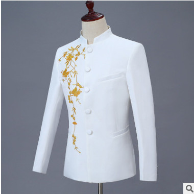 中山裝男2019新款中式立領(lǐng)龍鉆禮服套裝青年主持人司儀歌手演出服