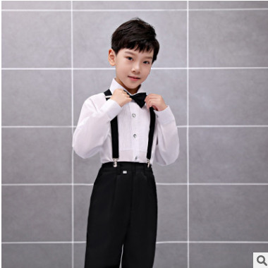 童裝2019新款春裝領結白色西裝潮范兒純棉背帶中性西裝套裝