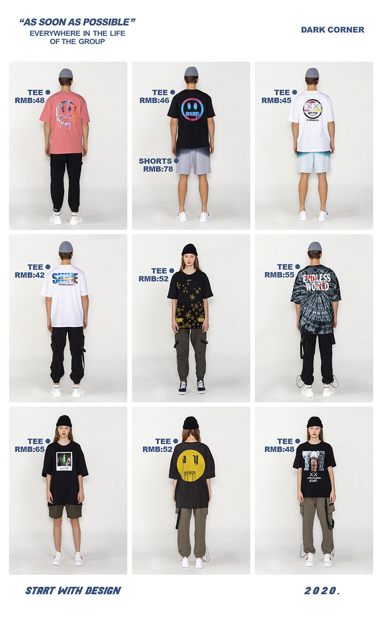 MYF男裝|2020春夏新款定制T恤寬松純色五分袖原宿風落肩情侶短袖t