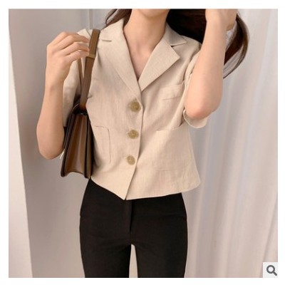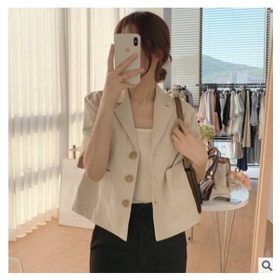 2021新款女裝韓國chic氣質西裝領顯瘦單排扣短款小外套時尚女裝