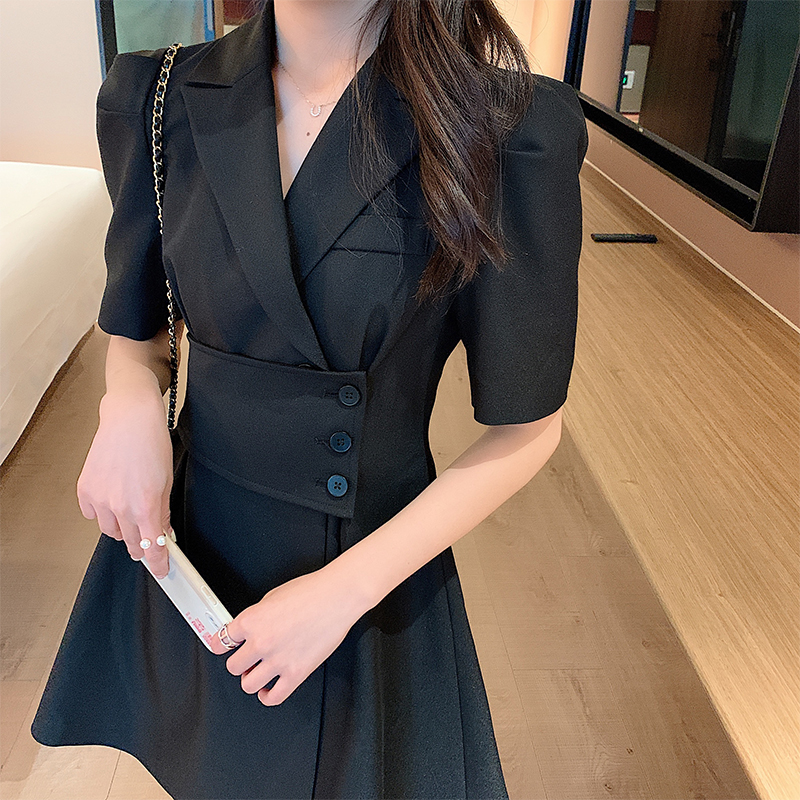 洋氣減齡高階西裝裙女夏季新款設計感收腰氣質法式短袖連衣裙