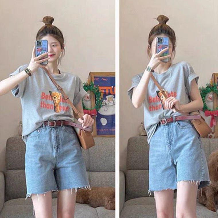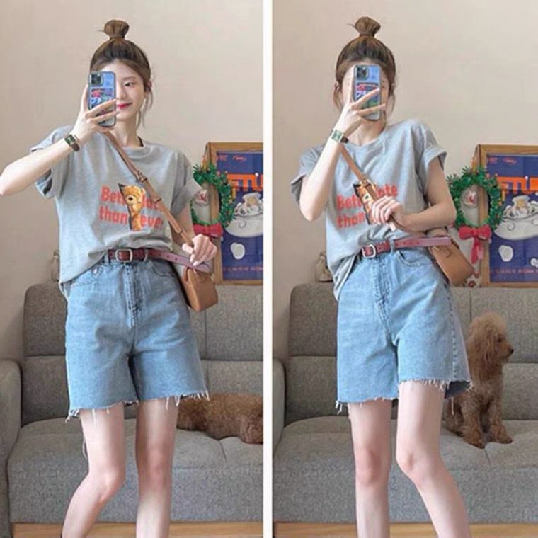 牛仔短褲2021夏季新款小個子時尚顯高網紅洋氣減齡闊腿褲兩件套女