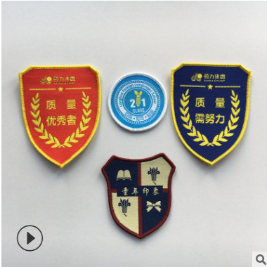 廠家幼兒園小學校徽刺繡布貼織嘜章時尚魔術熱熔背膠補丁貼胸臂章
