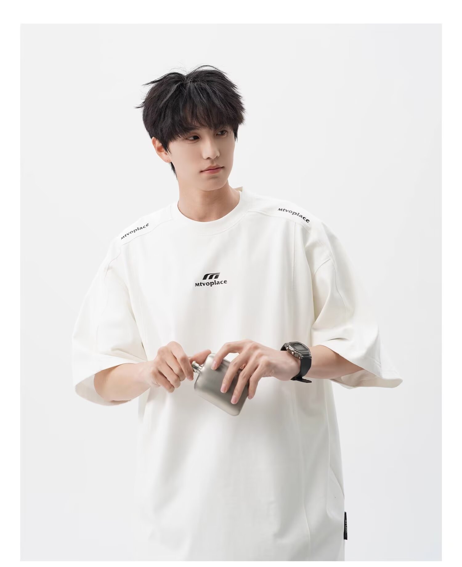 學(xué)院運動休閑刺繡寬松百搭圓領(lǐng)情侶短袖T恤白色上衣2025潮男港風(fēng)