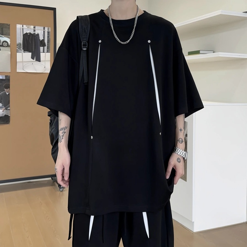 首頁(yè) > 供應(yīng)產(chǎn)品 > 跨境液氨棉結(jié)構(gòu)鉚釘T恤2025夏季新款潮流潮短袖男款百搭寬兩件套