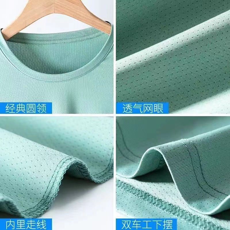 冰絲涼感速干短袖t恤男夏季新款網眼透氣半袖修身上衣男薄款輕薄