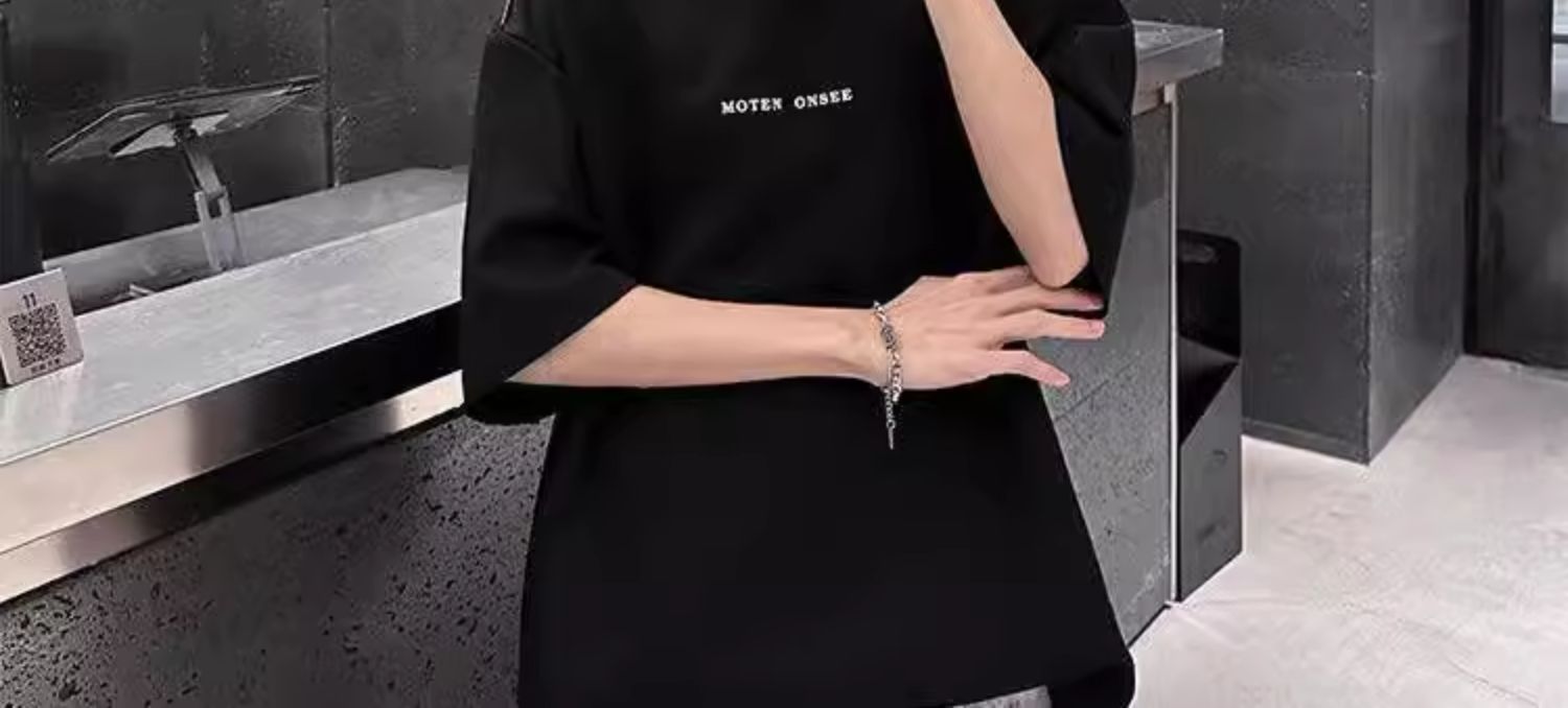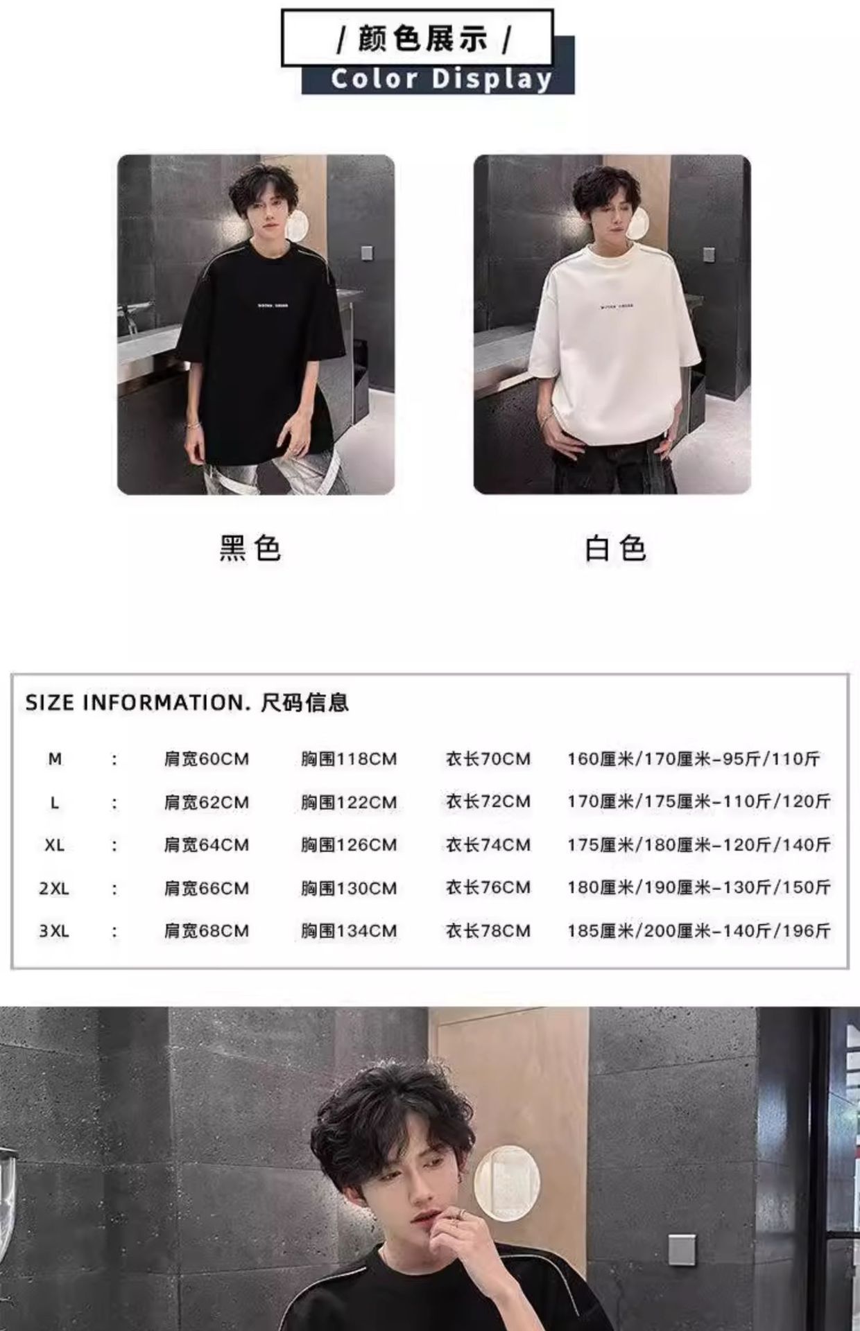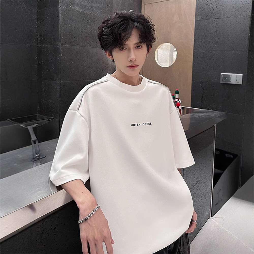 重磅美式高街白色t恤男潮高級感夏季cleanfit短袖墊肩七分袖男潮