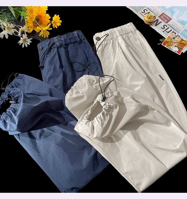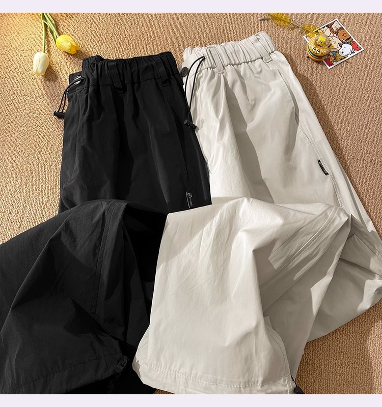 機能速干沖鋒褲褲子男夏季薄款美式復古工裝休閑褲寬松束腳運動褲