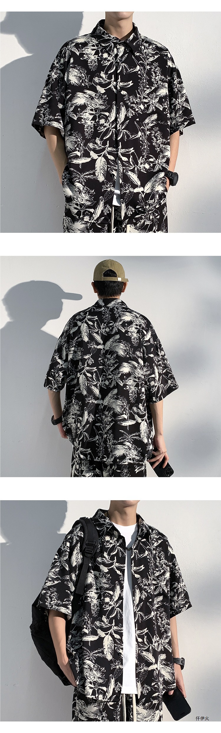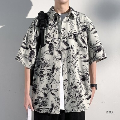 夏威夷碎花沙灘短袖襯衫男2025新款夏季薄款冰絲海邊度假襯衣休閑