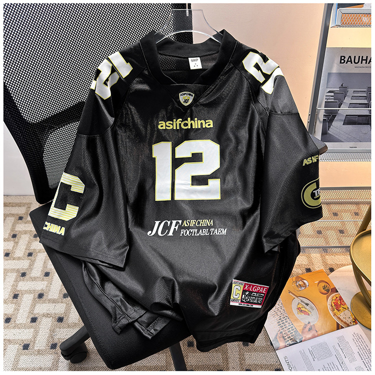 夏季新款設(shè)計(jì)感小眾美式復(fù)古印花潮流短袖球衣T恤街頭運(yùn)動(dòng)休閑T恤