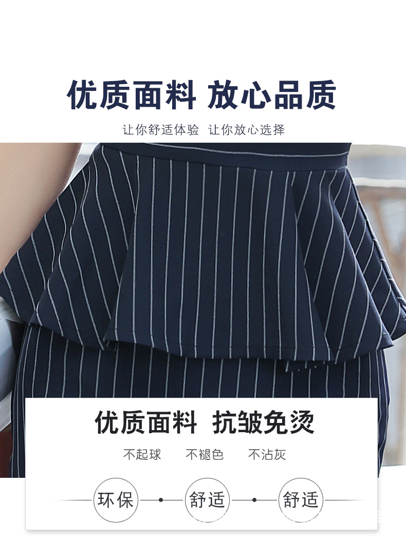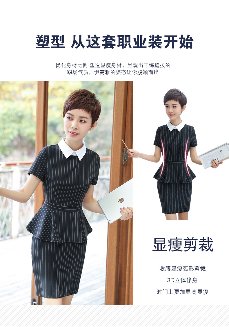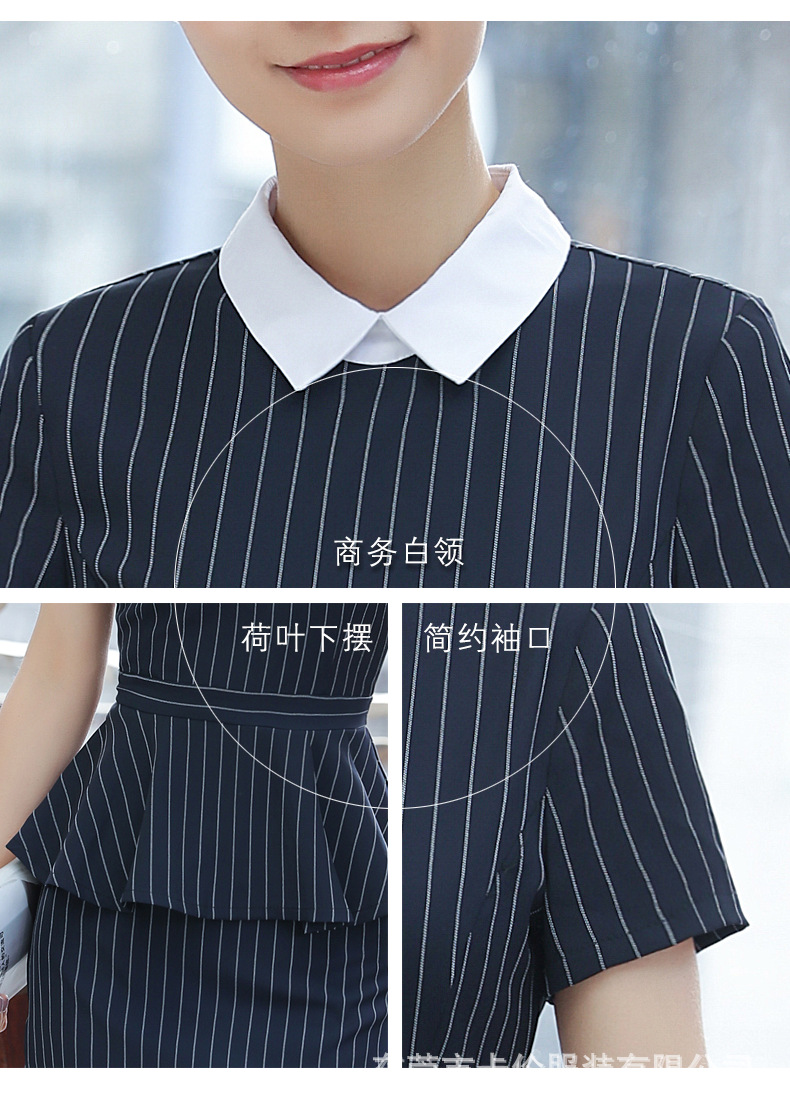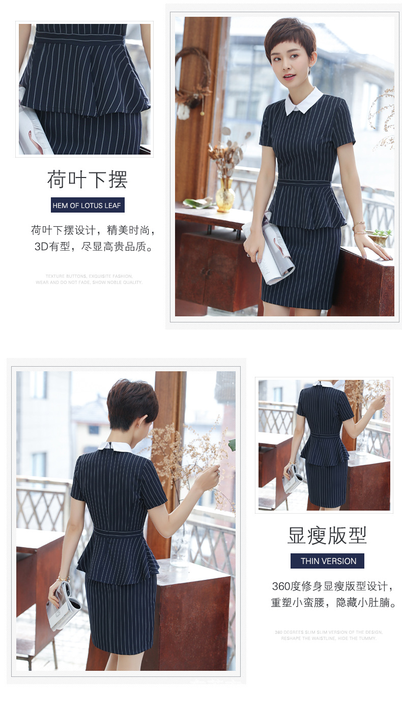 職業(yè)裝女套裝時(shí)尚條紋短袖修身上衣套裙2018夏季酒店美容師工作服