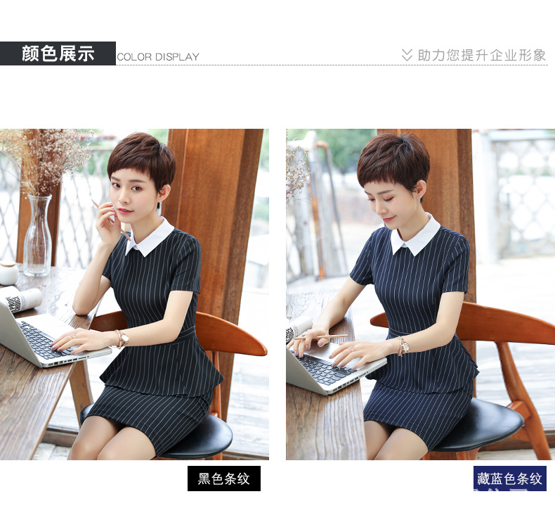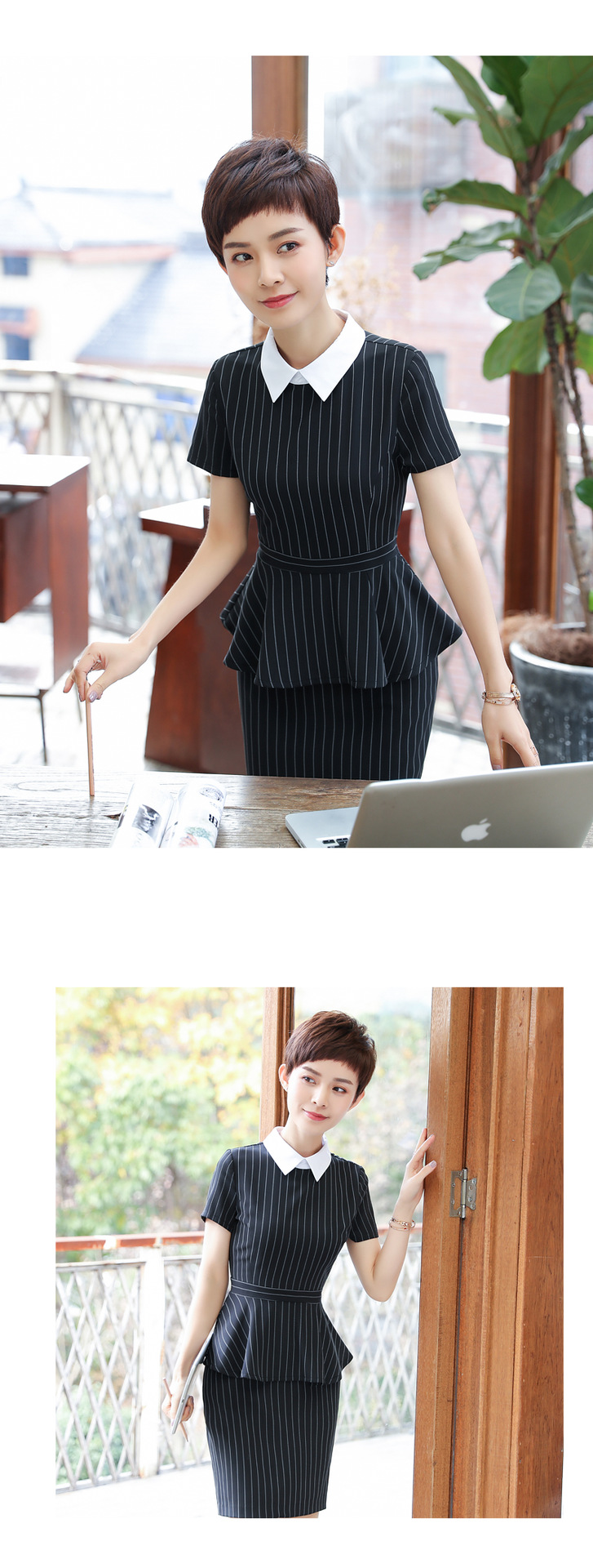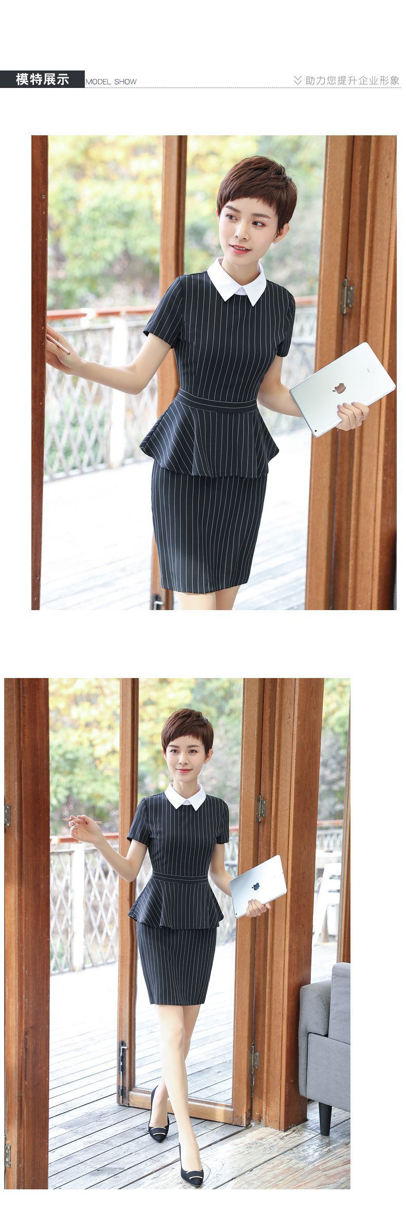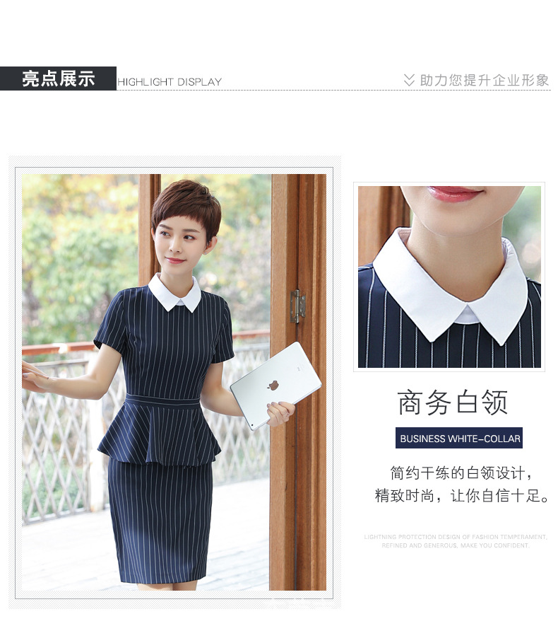 職業(yè)裝女套裝時(shí)尚條紋短袖修身上衣套裙2018夏季酒店美容師工作服