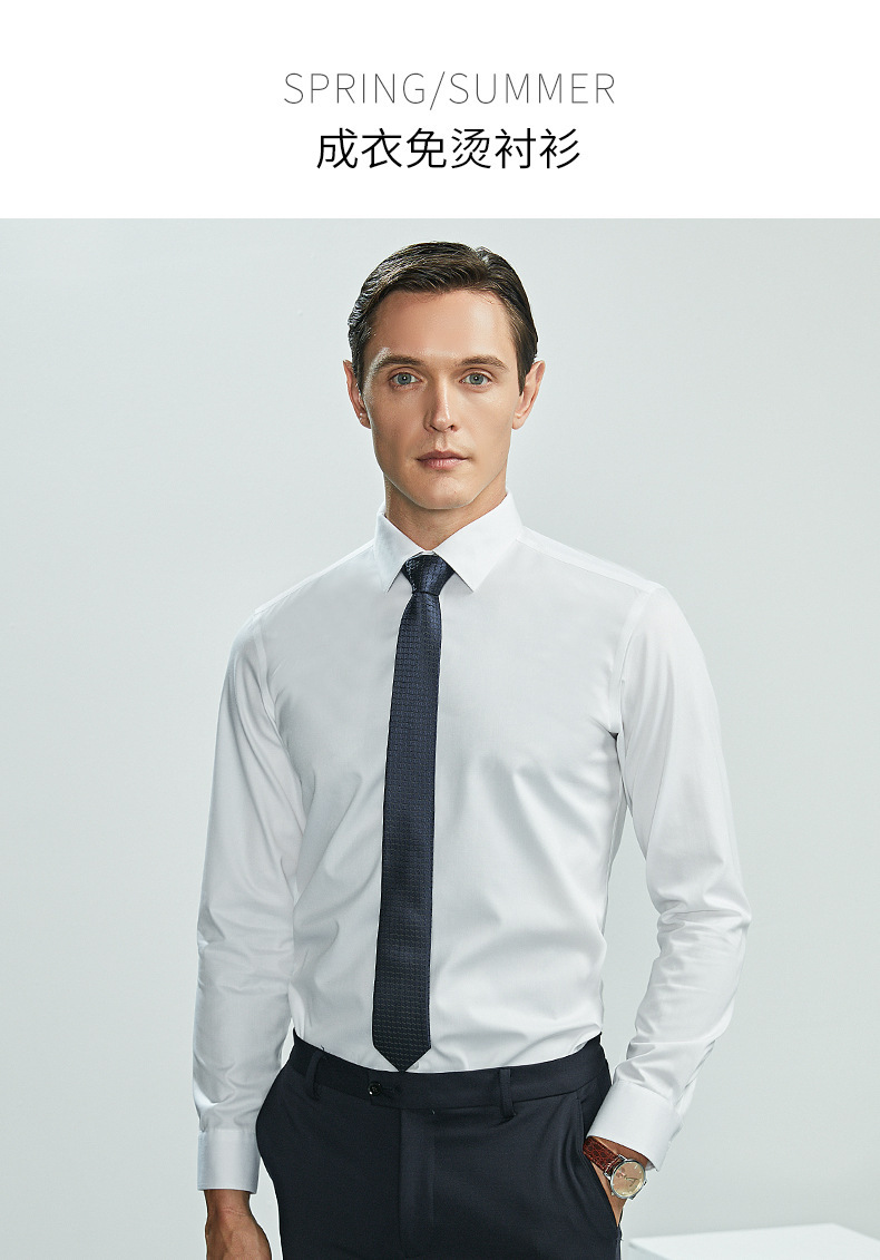 純棉成衣免燙高級感純白色長袖男士襯衫反門襟通勤秋季高端襯衣