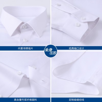 50%高含量竹纖維商務(wù)休閑長袖襯衫藍(lán)白色日常上班職業(yè)男士襯衣