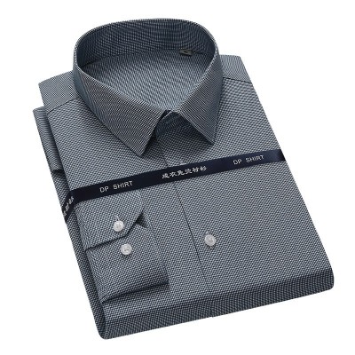 純棉男士長袖簡約格子襯衫批發墨綠色千鳥格免燙男式襯衣批發定制