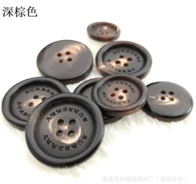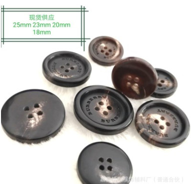 廠家現貨熱銷天然環保刻字牛角紐扣 高檔B字大衣風衣真牛角四眼扣