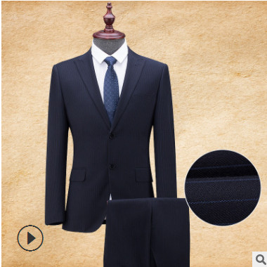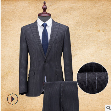 實體男裝2019新款男式西服套裝男士韓版修身結婚西裝條紋商務工服