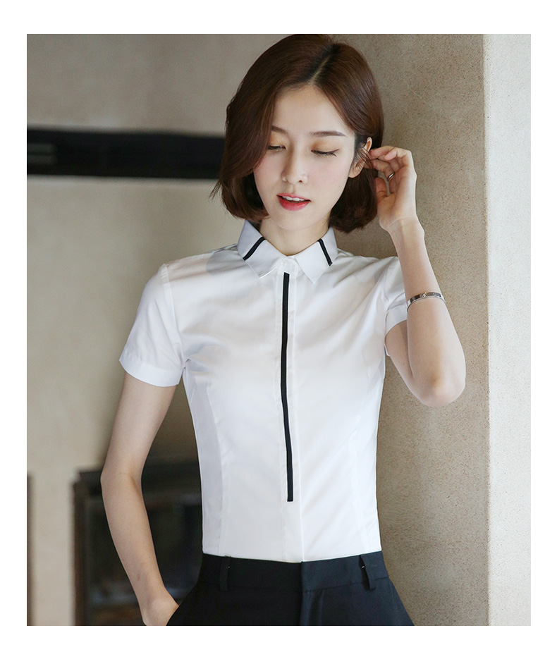批發白色襯衫女短袖2019夏新款修身工作服正裝灰色襯衣OL修身寸衫