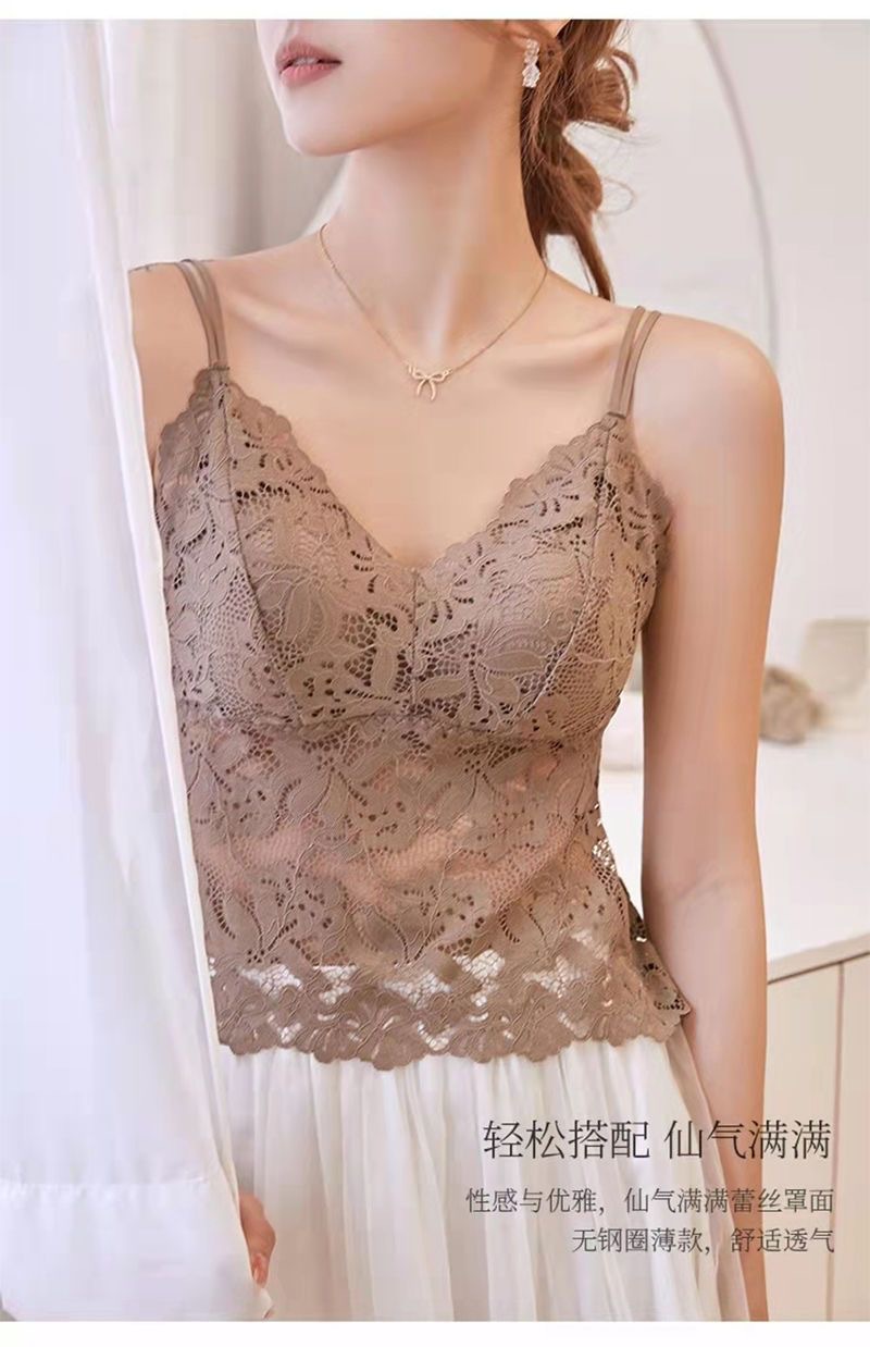 法式性感蕾絲吊帶背心女胸墊免穿文胸外穿內搭款美背內衣女款上衣
