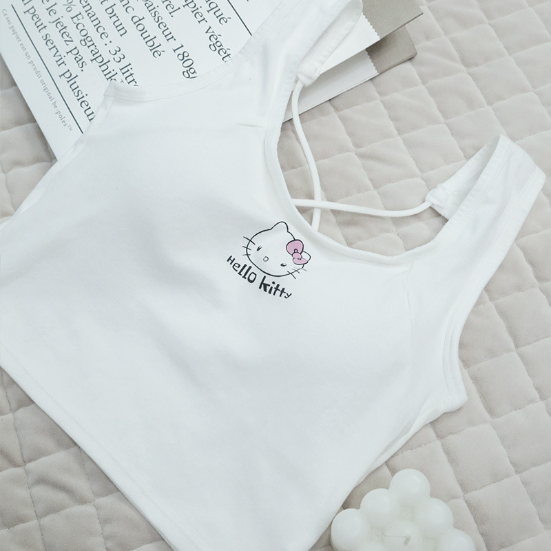 hellokitty吊帶背心夏季小紅書同款凱蒂貓帶胸墊交叉露背短款上衣