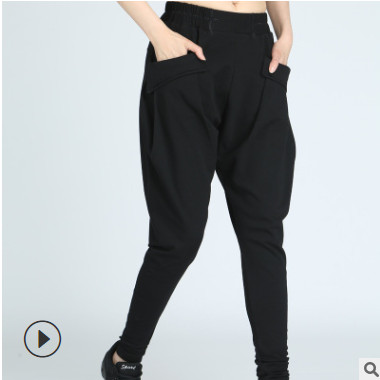 女款水兵舞 黑色 黃迷彩哈倫褲 夏季薄料長褲 大口袋休閑褲
